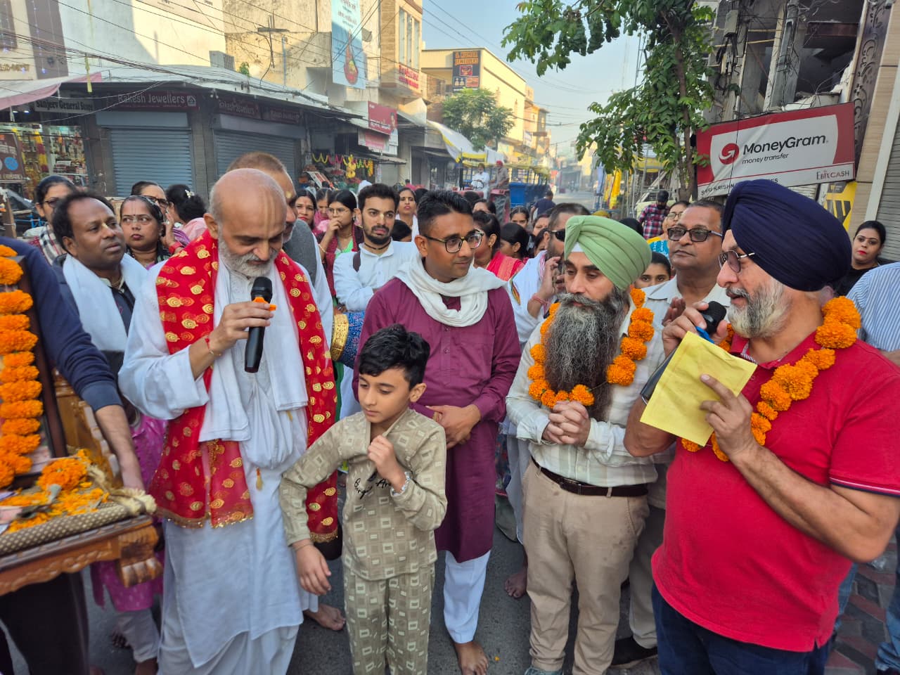 अंत में सनी दुआ जय गोबिंद, जय गोपाल, नाम हरि दा,गा,लो, जी प्रभात फेरी आई है के साथ साथ हरे कृष्ण महामंत्र करते हुए सभा को विश्राम दिया पालकी की सेवा रजत भल्ला और तापस प्रभु ने की।