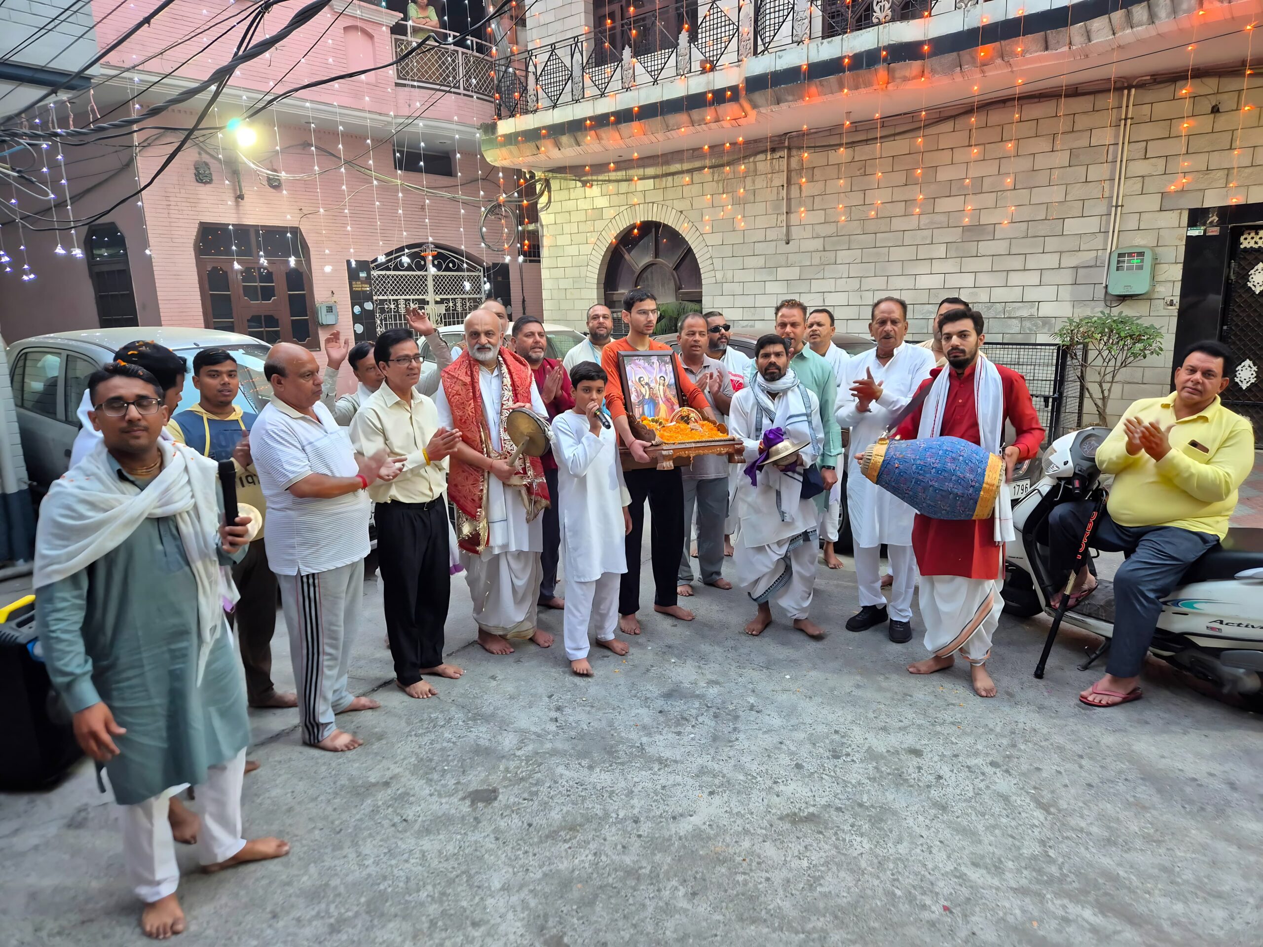 पालकी की सेवा करण कौरा, संजीव प्रभु और रजत भल्ला ने की प्रभातफेरी में ठाकुर जी की पालकी के आगे पुष्प वर्षों की गई कुलदीप मेहता ने निताई गौरांग का संकीर्तन करते हुए संकीर्तन को आगे बढ़ाया।